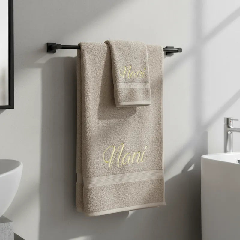 Set de Toallón y Toalla de Mano Personalizados con Bordado – Regalo Elegante y Único